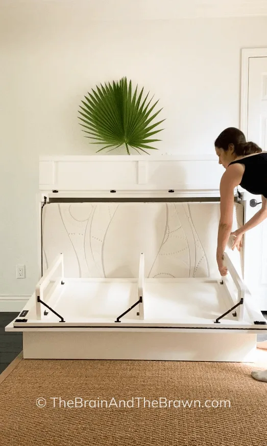 - I loved that this cabinet bed could be used for extra surface space if I needed it for laundry, setting down extra baskets or clothes, etc. (Which I didn’t end up needing, but we sure used it to set a million other things onto throughout the day! 😆)