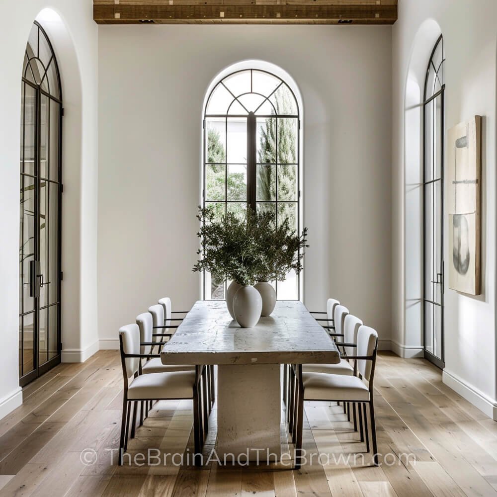You can definitely get away with going bigger and busier on large dining tables, but even then…a massive table with an elegant, restrained centerpiece goes a long way!